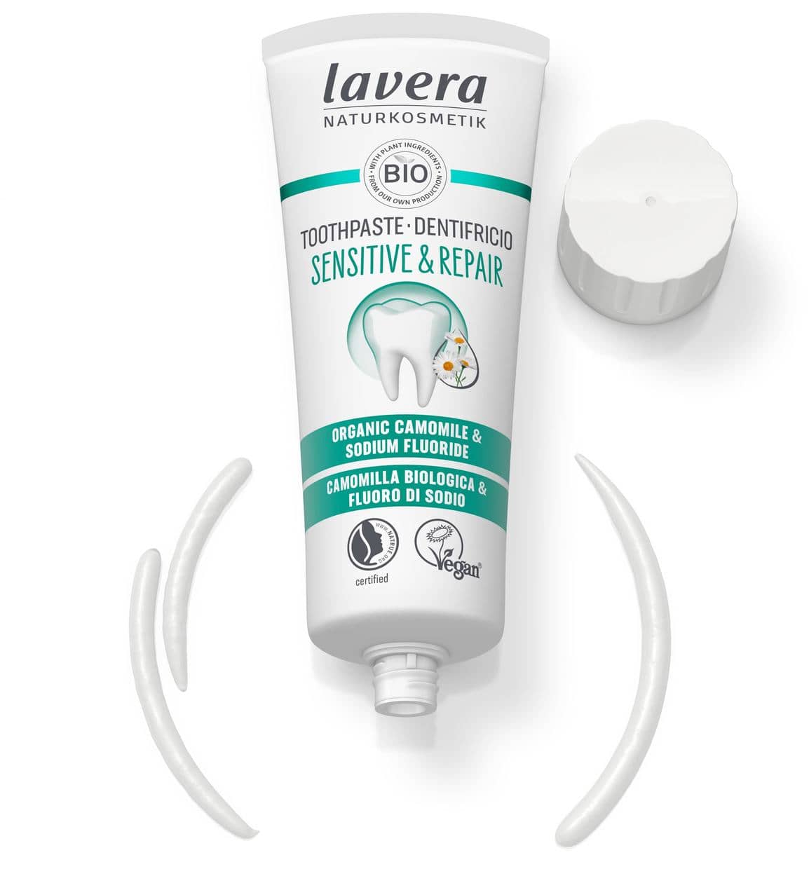lavera Dentifricio Sensitive & Repair offre ai denti sensibili una protezione 5 in 1 e aiuta a riparare lo smalto.