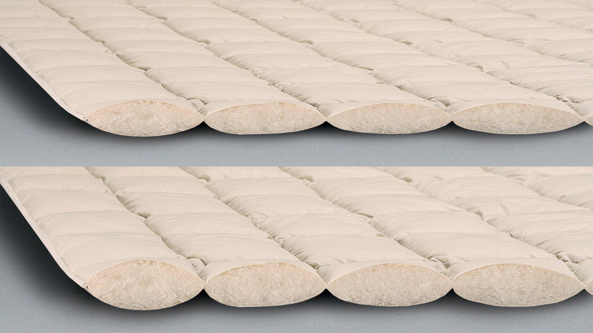 Questa coperta in cotone delicata sulla pelle è molto flessibile e offre sempre il piumino giusto per ogni temperatura . La trapunta leggera è ideale per i caldi mesi estivi mentre quella più pesante è la scelta giusta per le mezze stagioni. Se questi vengono collegati con i pratici nastri o le chiusure a scatto senza nichel, si crea per l’inverno un piumino accogliente, caldo e coccoloso.